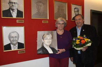 Auch Patricia Rebmann hat das Bild bereits gesehen. Melanie Seppich vom Sekretariat des Bürgermeisters, die ein Foto übermittelt hat, überbrachte ihre Grüße: „Unsere ehemalige Bürgermeisterin hat sich sehr gefreut. Sie findet das Ergebnis gelungen und bedankt sich herzlich bei Brigitte Leskau.“