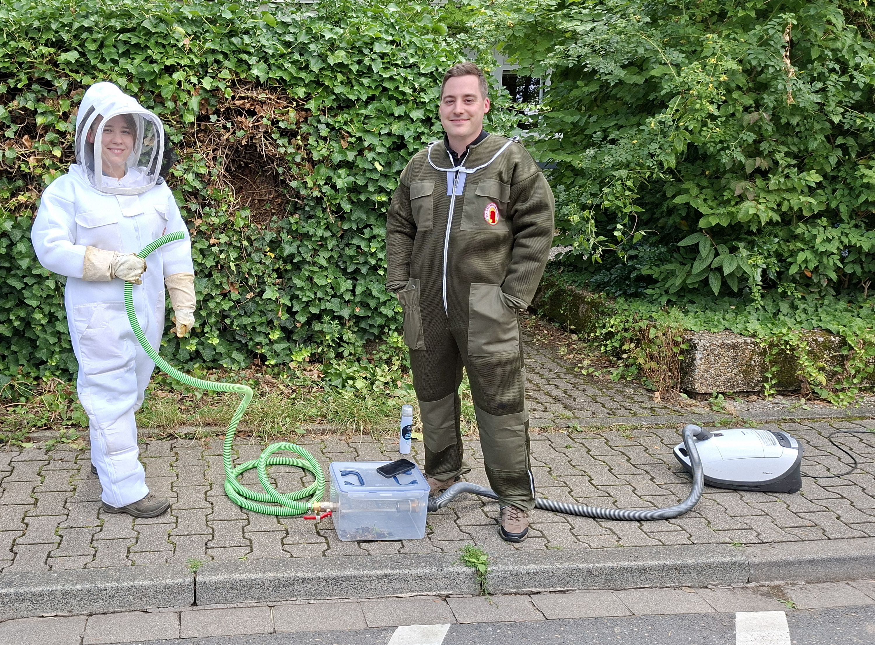 Die städtische Umwelt- und Naturbeauftragte Miriam Balleis hat daher umgehend die Landesanstalt für Umwelt Baden-Württemberg (LUBW) informiert, die daraufhin mehrere Kontakte für die fachgerechte Entsorgung bereitstellte. Jennifer Menrath und Marcel Widmann von der Familienimkerei „TheHoneyBees“ aus Altwiesloch wurden dann von der Stadt beauftragt und haben binnen kürzester Zeit das Primärnest professionell entsorgt.