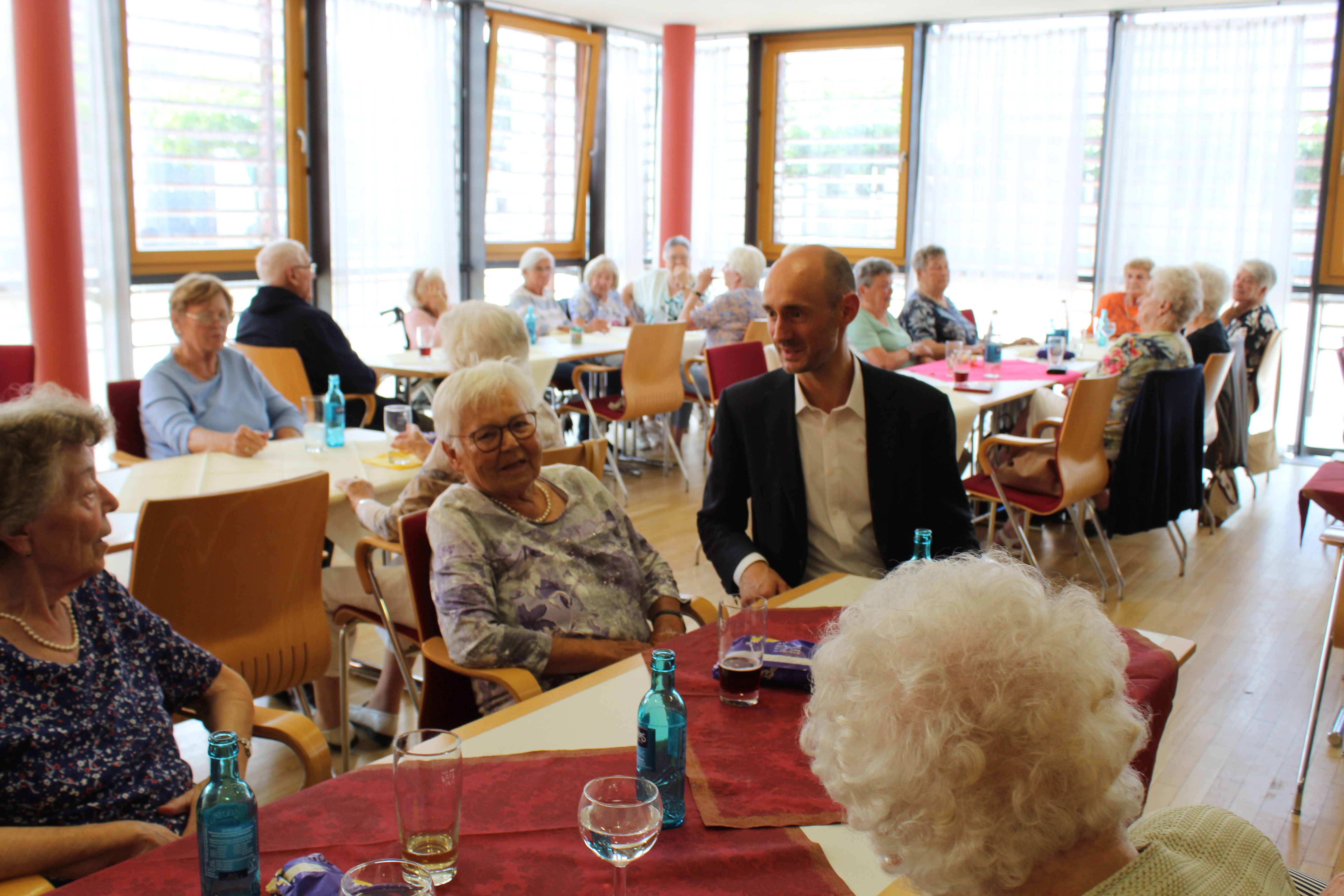 Anschließend ging er von Tisch zu Tisch, um sich mit den Besucherinnen und Besuchern des kommunalen Seniorentreffs zu unterhalten.
